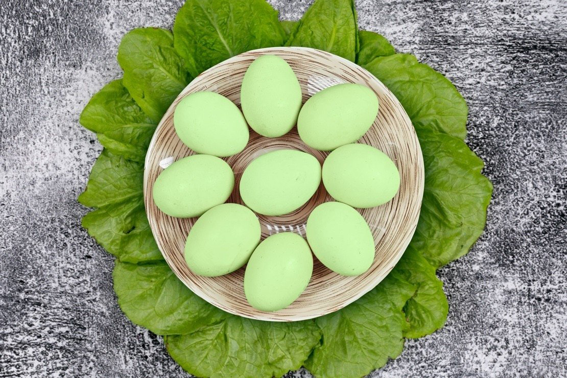 Щоб отримати світло зеленого, м’ятного кольору крашанки, варто взяти пучок шпинату, залити його літром води та довести до кипіння і варити ще 5 хвилин. Далі зняти суміш з вогню та остудити. Зварені яйця залишити у рідині на 6 годин.