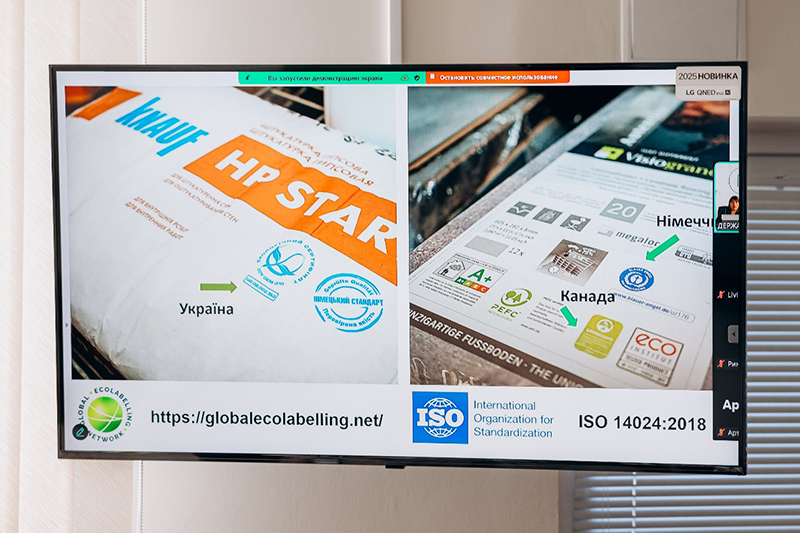 У своєму виступі вона зазначила взаємозв'язок ТР КМП з технічними регламентами та стандартами екомаркування на різні категорії продукції.