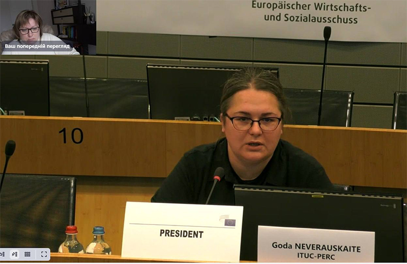 Года Невераускайте, співголова Дорадчої групи ЄС інформувала про спільну позицію Дорадчих груп України та ЄС з питань торгівлі та праці.