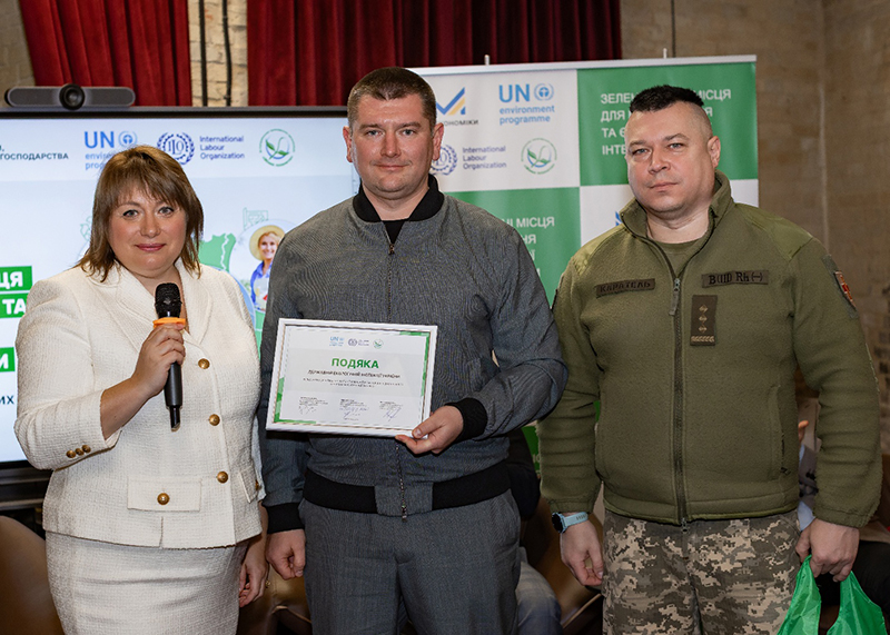 Вручення подяки від проєкту Державній екологічній інспекції України за підтримку реалізації проєкту «Зелені робочі місця для відновлення та європейської інтеграції України»