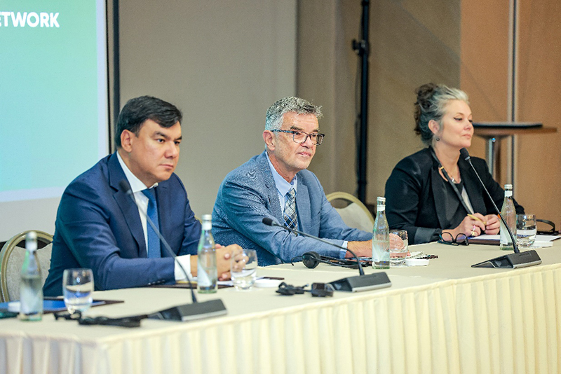 Азіз Абдухакимов, Міністр екології, охорони навколишнього середовища та зміни клімату Республіки Узбекистан, Ульф Якель, UNEP – One Planet та Кейт Харріс, голова секретаріату GEN