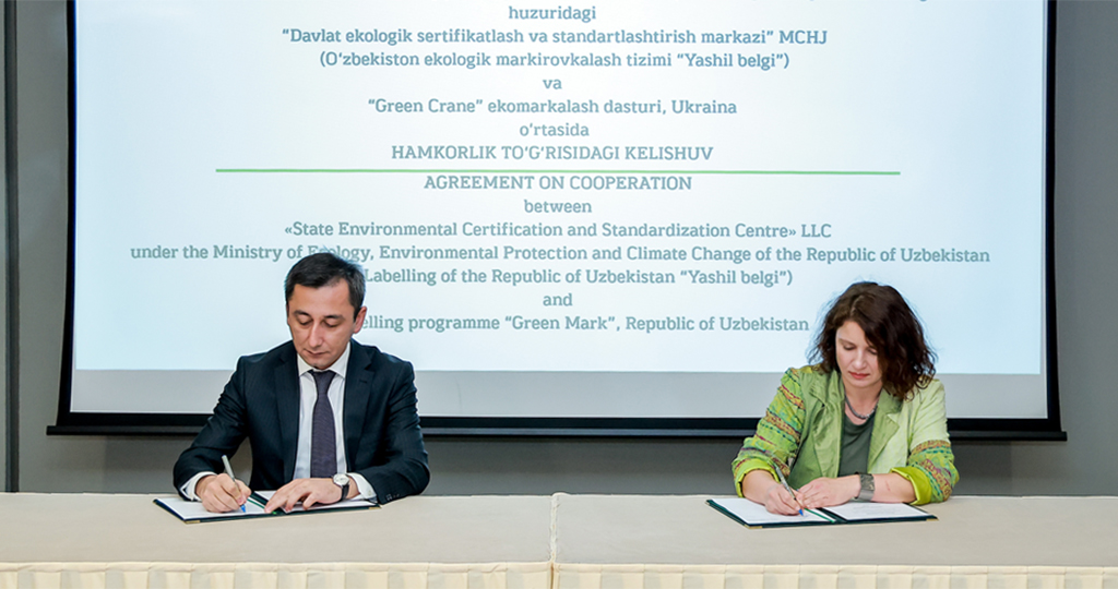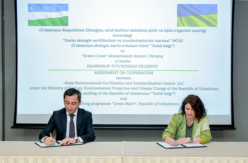 Підписання договору про співпрацю між узбецькою програмою екомаркування "Yashil Belgi" та українською – "Зелений журавлик"