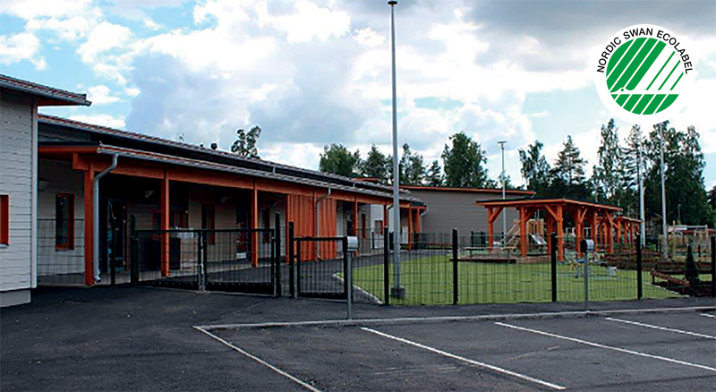 Дитячий садочок на 200 дітей до семи років у м. Хівінкая, Фінляндія. Цей заклад є першим екологічно сертифікованим у Фінляндії за стандартом «Малі будинки, багатоквартирні будинки та будівлі шкільних та дошкільних закладів» програми екологічного маркування скандинавських країн Nordic Swan Ecolabel. Схема сертифікації згідно з ISO 14024 яка відповідає тій, що впроваджується і в Україні.